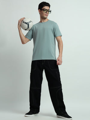 Rarebond Flow Half Sleeve Crew Neck Corn Flower Blue Comfort Fit t shirt