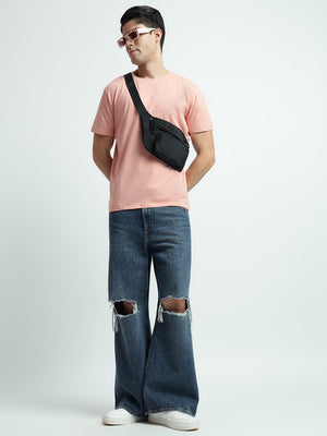 Rarebond Flow Half Sleeve Crew Neck Peach Comfort Fit