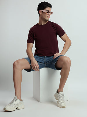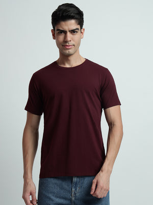 Rarebond Flow Half Sleeve Crew Neck Wine Comfort Fit