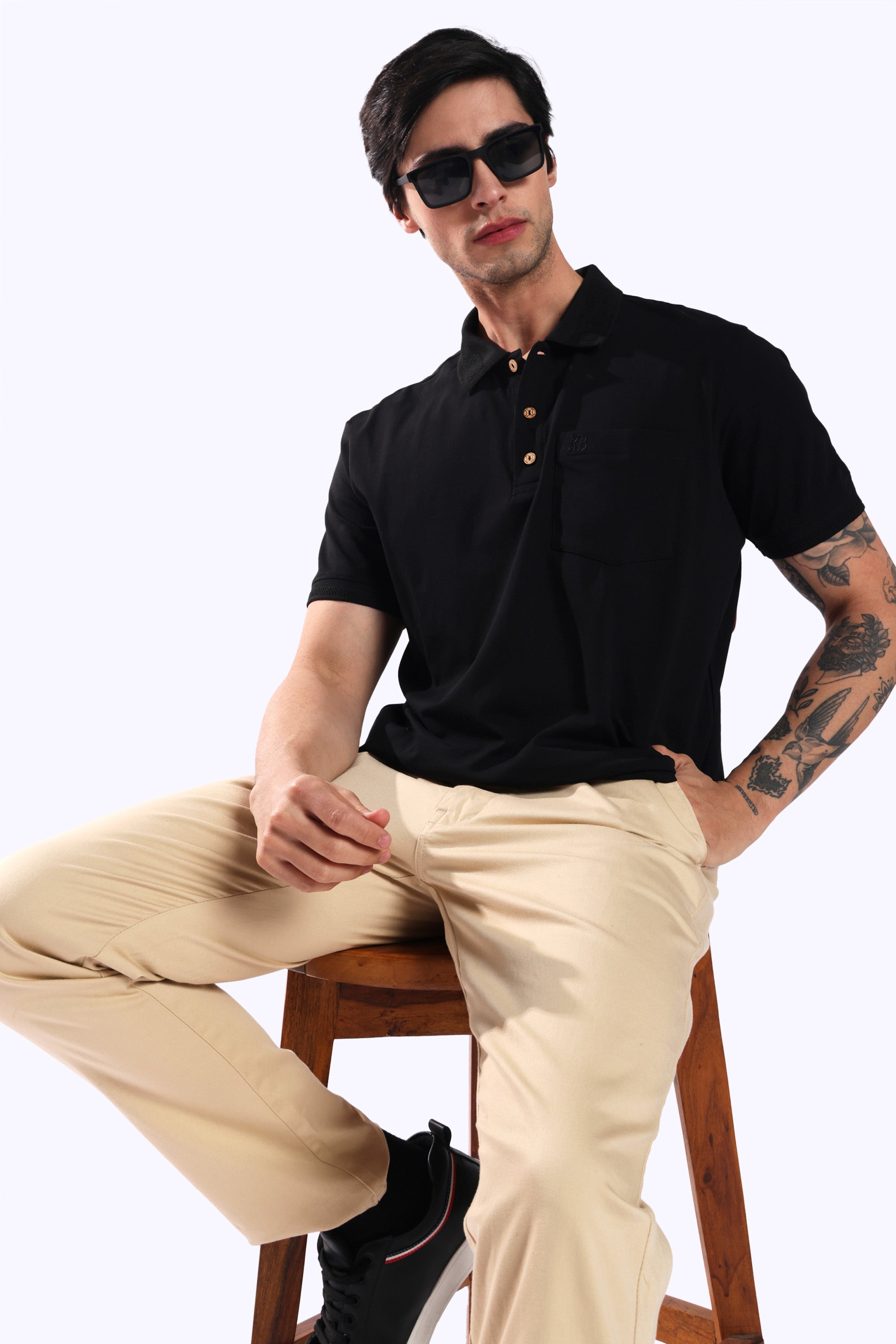 Rarebond Flow Half Sleeve Polo Neck Black Comfort Fit T-Shirt