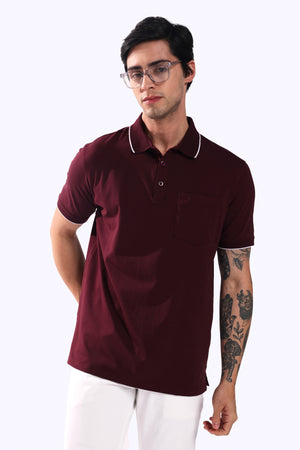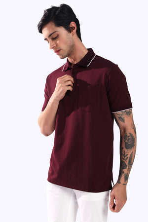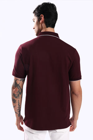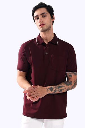 Rarebond Flow Half Sleeve Polo Neck Wine Comfort Fit T-Shirt