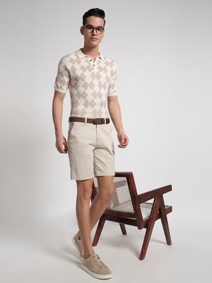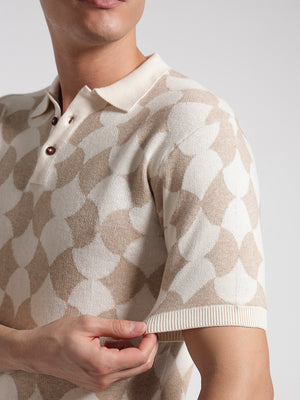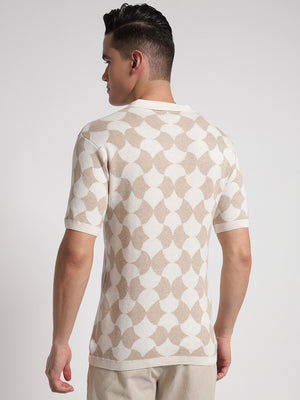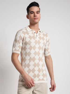 Rarebond Mozaic Beige Half sleeve Comfort fit Knitted Polo t shirt
