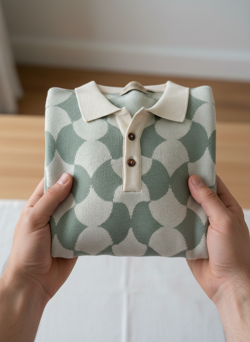 Experience the perfect fusion of classic style and superior comfort with the Mozaic Polo T-Shirt. This standout piece is a knit polo crafted entirely from premium cotton, ensuring a super comfortable and breathable feel that you can wear all day long. The signature "Mozaic" pattern is woven directly into the fabric, featuring a distinctive beige and off-white diamond design that elevates it beyond a basic tee. Finished with a classic ribbed polo collar and a button placket, the Mozaic Polo is the effortless choice for a sharp, yet relaxed look