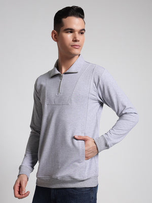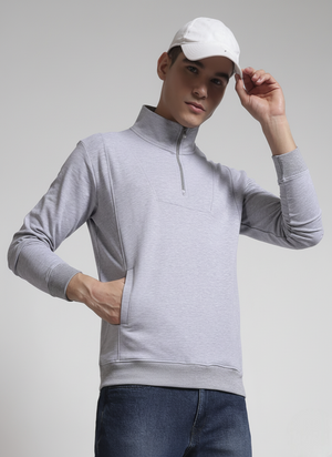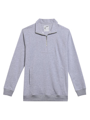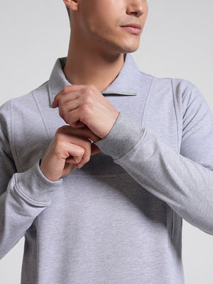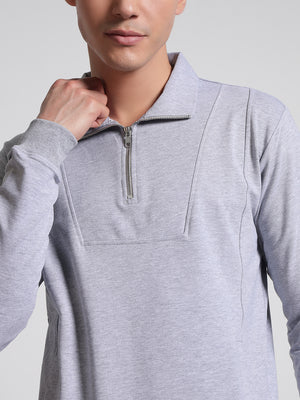 Rarebond Q-Zip High-Neck Grey Melange Full sleeves Comfort Fit Heavy Weight T shirt