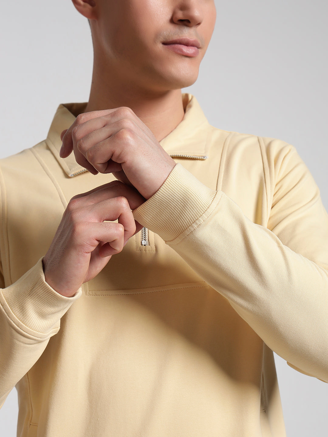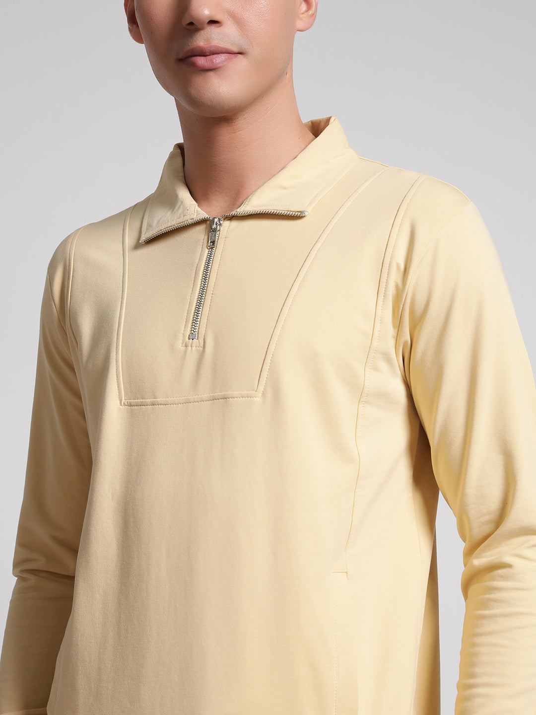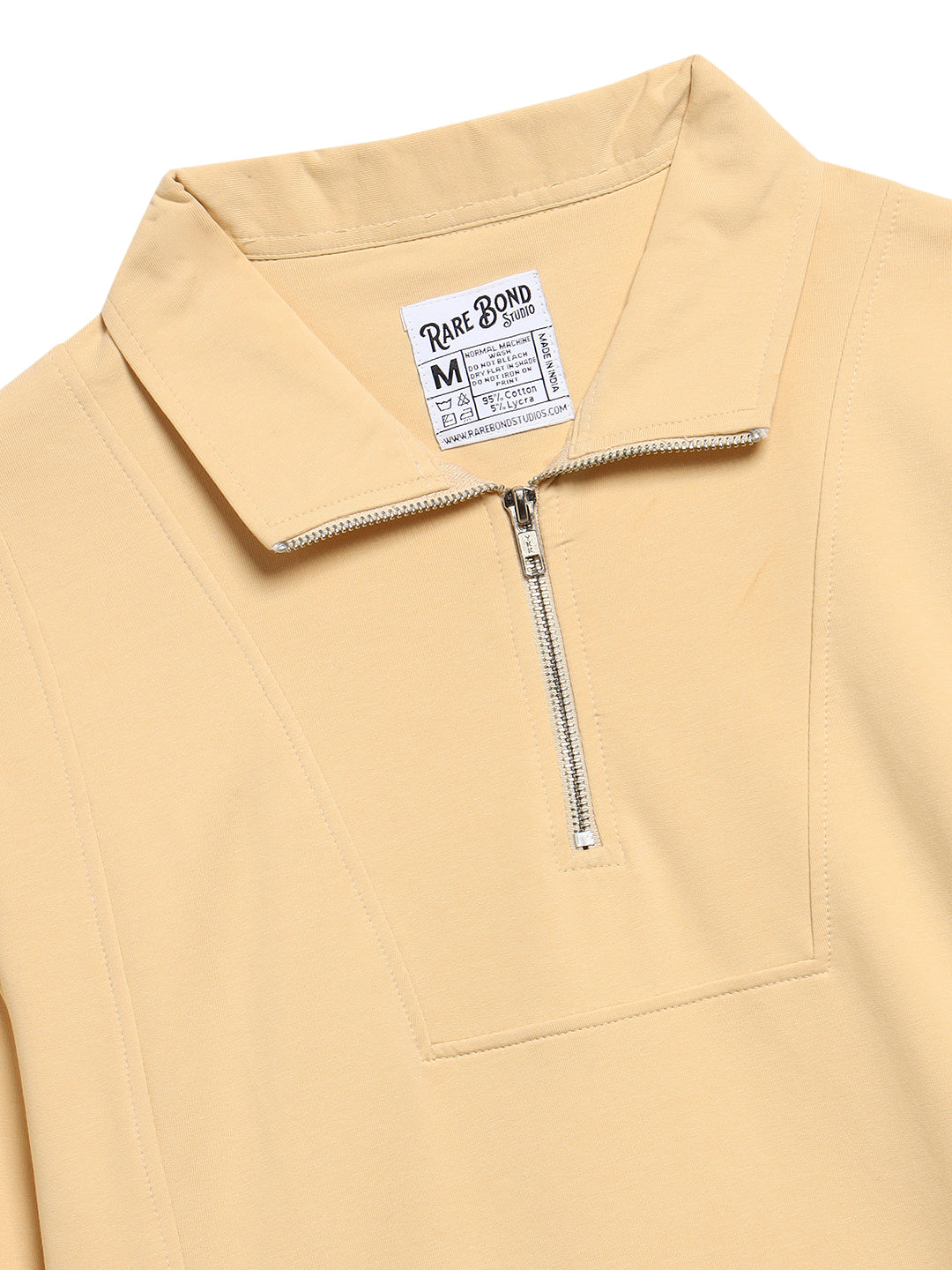 Rarebond Q-Zip High-Neck Yellow Full sleeves Comfort Fit Heavy Weight T shirt