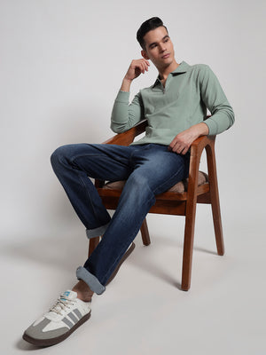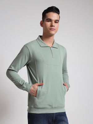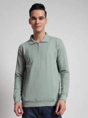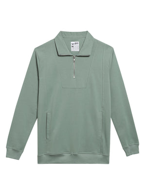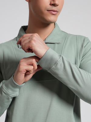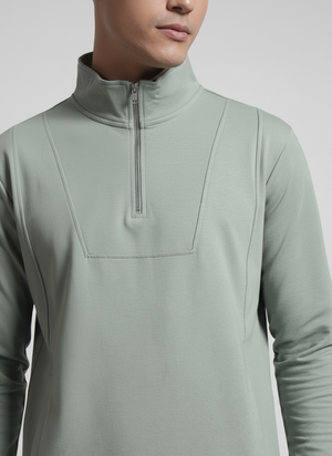 Rarebond Q-Zip High-Neck Green Full sleeves Comfort Fit Heavy Weight T shirt