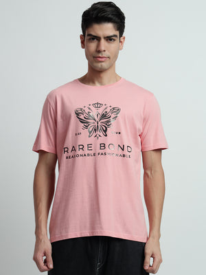 Rarebond's Butterfly Pink Half Sleeve Comfort Fit T-Shirt