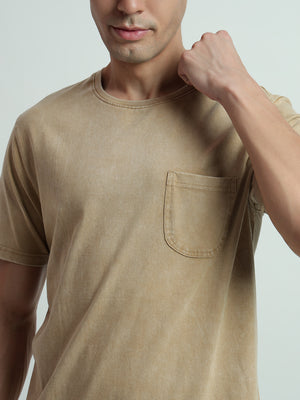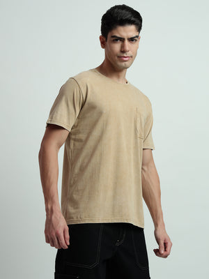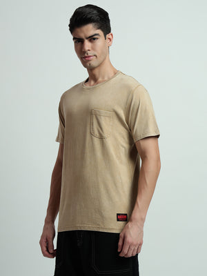 Rarebond's Cloud Stone Khaki Half Sleeve Comfort Fit T-shirt
